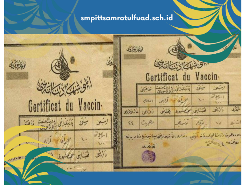 Sertifikat Vaksin Yg dikeluarkan Utsmaniyyah sekitar tahun 1326 H untuk anak laki-laki berusia 10 tahun.