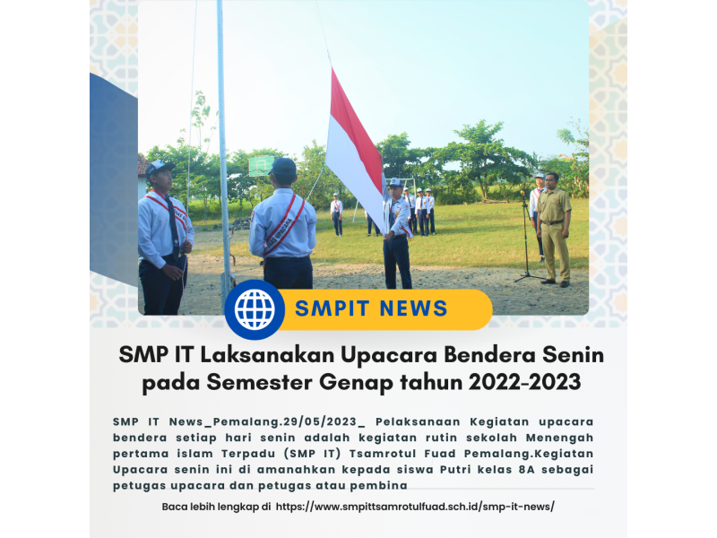 SMP IT News_Pemalang.29/05/2023_ Pelaksanaan Kegiatan upacara bendera setiap hari senin adalah kegiatan rutin sekolah Menengah pertama islam Terpadu (SMP IT) Tsamrotul Fuad Pemalang. ...