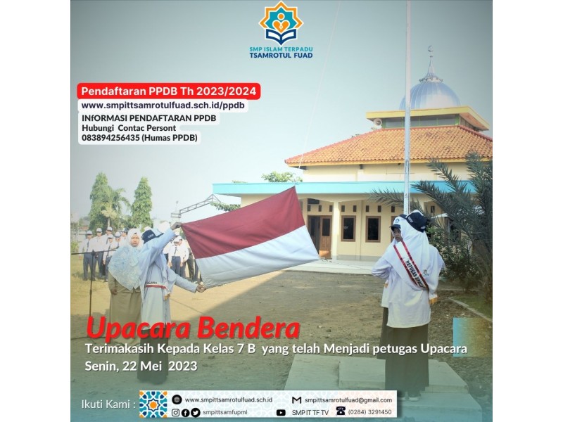 SMP IT News_Pemalang.22/05/2023_ Pelaksanaan Kegiatan upacara bendera setiap hari senin adalah kegiatan rutin sekolah Menengah pertama islam Terpadu (SMP IT) Tsamrotul Fuad Pemalang. ...