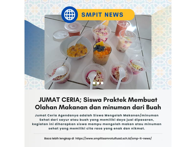 JUMAT CERIA! Siswa SMP IT TSamrotul Fuad Pemalang Praktek Membuat Olahan Makanan dan minuman dari Buah